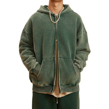 הסיטונאי של גברים נשים כותנה יוניסקס כבד ז 'קט פליז וינטג' חומצה לשטוף את הכתף מותאם אישית רוכסן כפול zip למעלה סוודר